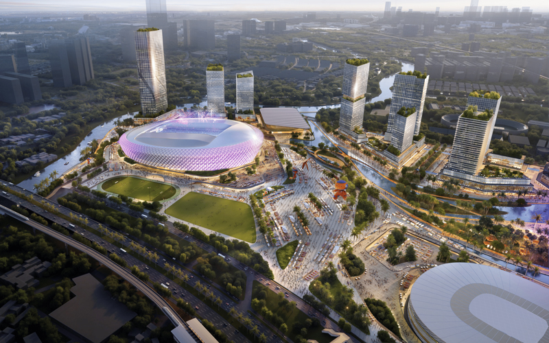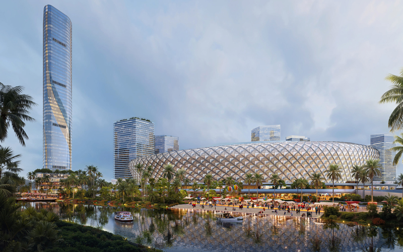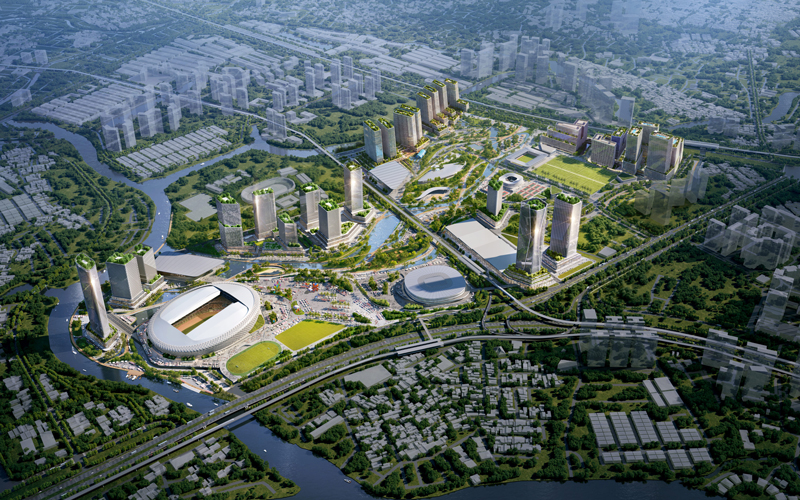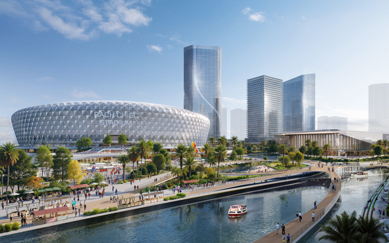 - Tầng cao: Công trình thể thao cao 5 tầng, công trình khách sạn cao 55 tầng
