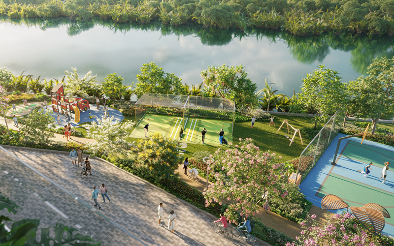 - Công viên 26ha, kênh đào, đường dạo bộ