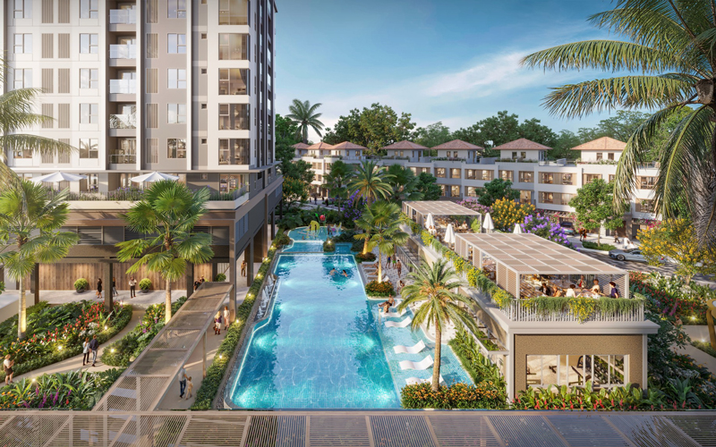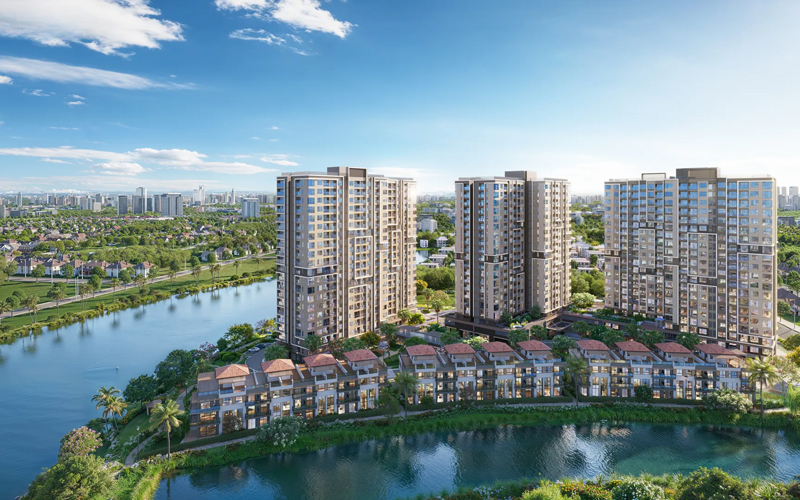- Quy mô: 3 block cao 20 tầng, với 817 căn hộ + 24 nhà phố compound